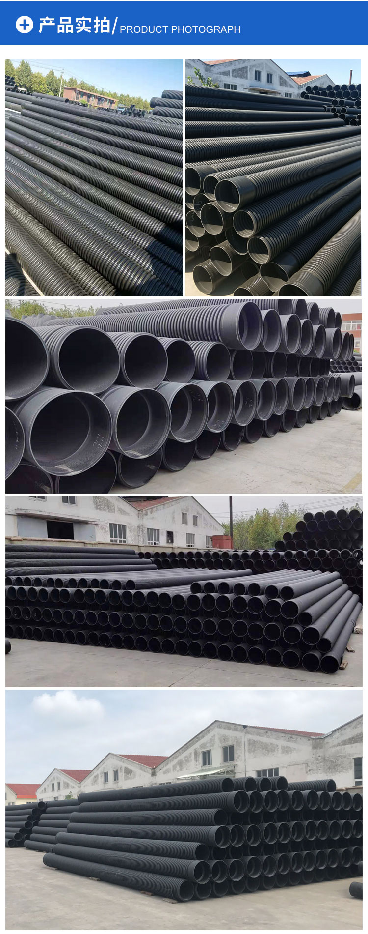 HDPE雙壁波紋管是以HDPE為主要原材料的復合型管材。廣泛應用于市政、小區(qū)、工業(yè)雨污水排放、電力通信護套、農(nóng)田灌溉等。